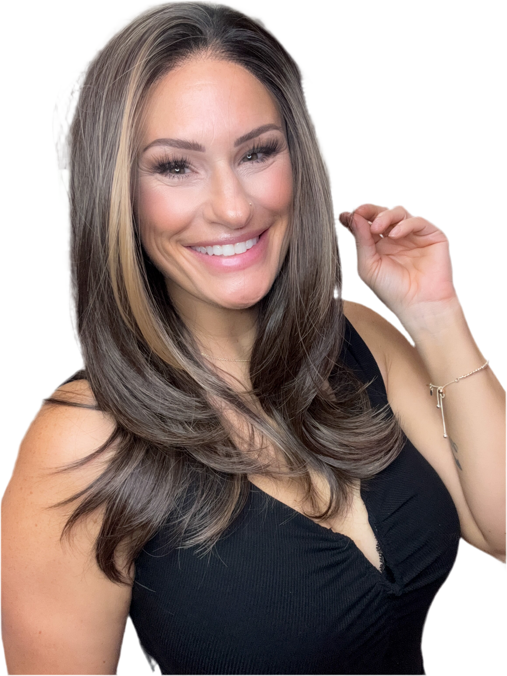 Allison This is my dream hair! She is lightweight, perfect layers, the highlighting around the face is very flattering. Right out if the bag shes perfection! Buy her, you’ll thank me later!