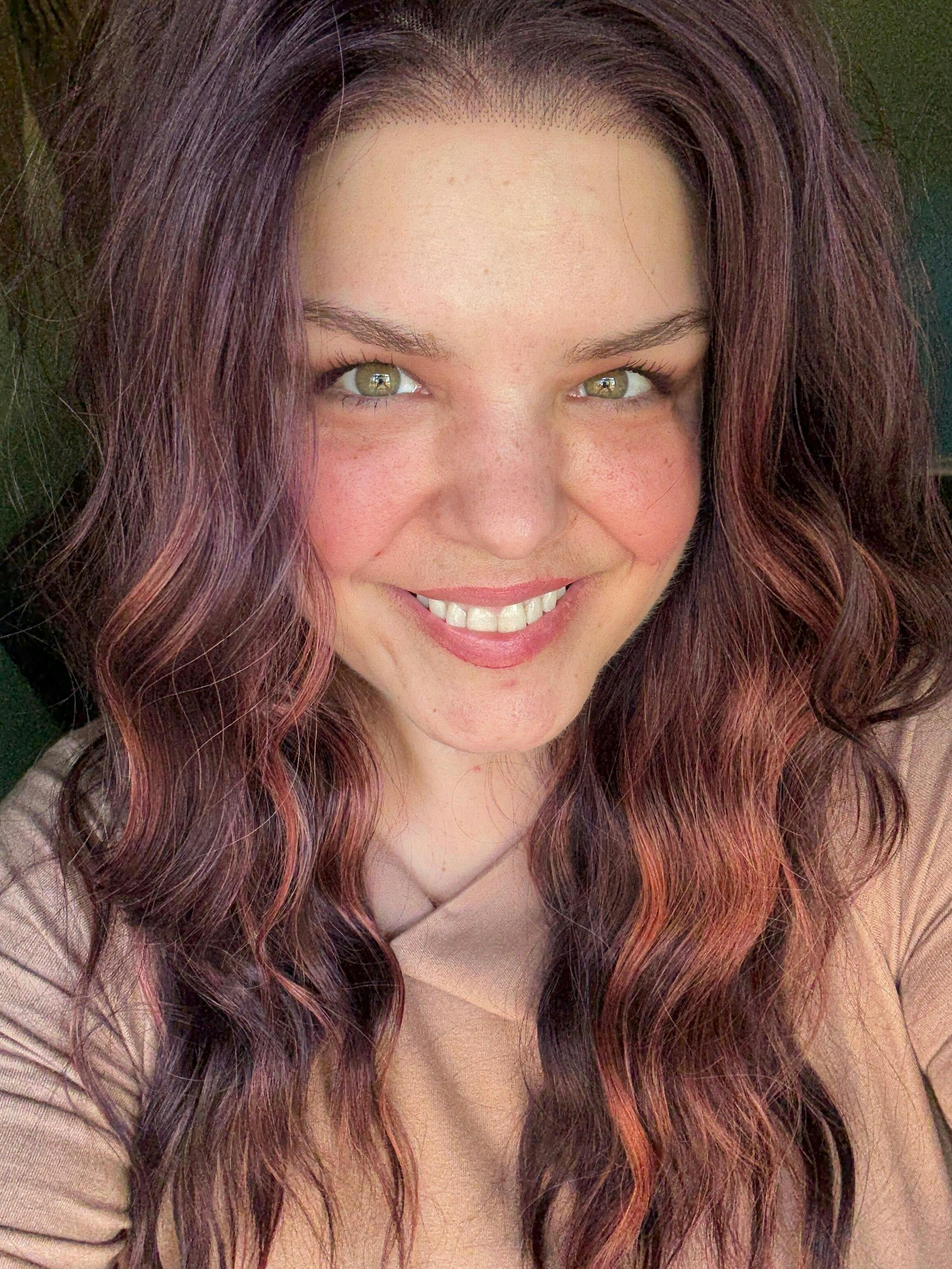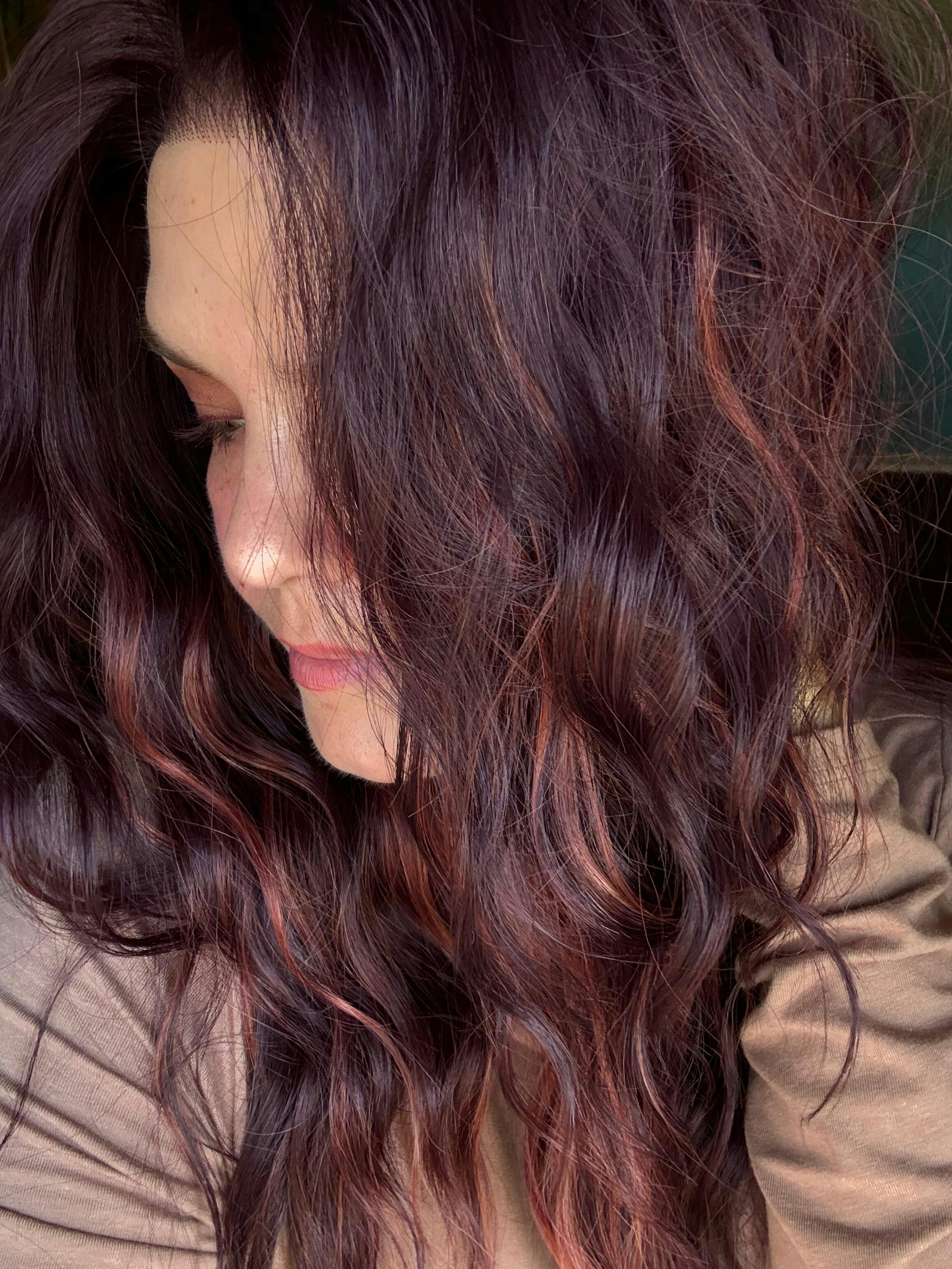 This is hair dreams…rich, Merlot water waves with strawberry highlights! Speechless. 💜💜 if I could give her 100 stars, I would!